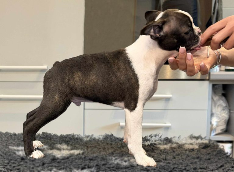 LEVEL HIGH Boston Unique ”Gurra”Male, born 8.7.2025Eyes: Patella:JHC DNA : Free by parentsBreeder: Justyna Bojarska, Poland